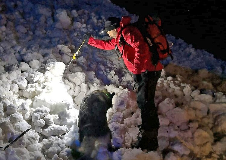 Bei den Bergwacht-Rettungshunden werden besondere Ansprüche an Mensch und Tier gestellt: Der Hundeführer muss die Bergwacht-Ausbildung abgeschlossen haben und über Erfahrungen im alpinen Gelände verfügen. Die Lawinensuche ist eine eigene Disziplin neben der Flächen- und Trümmersuche in der Rettungshundeausbildung. Der Lawinenhund ist nach wie vor das Mittel der Wahl im planmäßigen Lawineneinsatz, insbesondere wenn vom Verschütteten kein Signal seines Lawinenpiepsers aufgefangen werden kann – bevor mit zeitraubenden Suchketten auf der Lawine begonnen wird zu suchen.