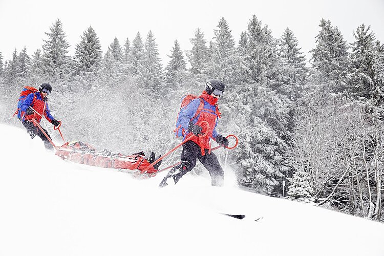 Im Winter liegt der Schwerpunkt der Bergwachtarbeit auf der Pistenrettung. Die Bergwachtfrauen und -männer sorgen in diesem Fall auf Abfahrtspisten und Langlaufloipen für die schnelle Versorgung der Patienten. Sind es auf der Abfahrtspiste vor allem die chirurgischen Notfälle, die es zu versorgen gilt, so nehmen auf den Langlaufloipen die akuten Krankheitsbilder infolge einer Herz-Kreislauf-Erkrankung stetig zu. Auch die Einsätze im freien Skigelände nehmen zu und stellen die Retter immer wieder vor Herausforderungen.