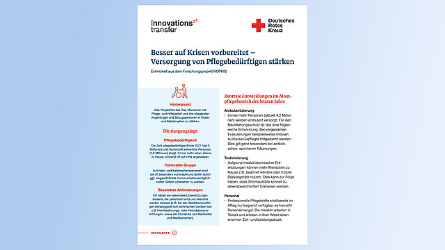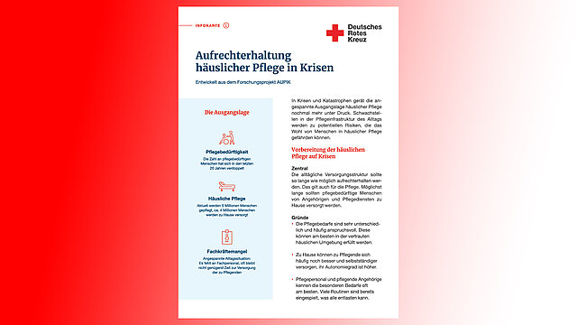 Wie können wir pflegebedürftige Personen, die ambulant versorgt werden, in Krisensituationen besser schützen und ihre Versorgung gewährleisten? Welche Mechanismen, Kooperationen und Strategien helfen uns, die ambulante Pflegeinfrastruktur verlässlich aufrecht zu erhalten? Finden Sie hier umfangreiche Informationen zum Thema.