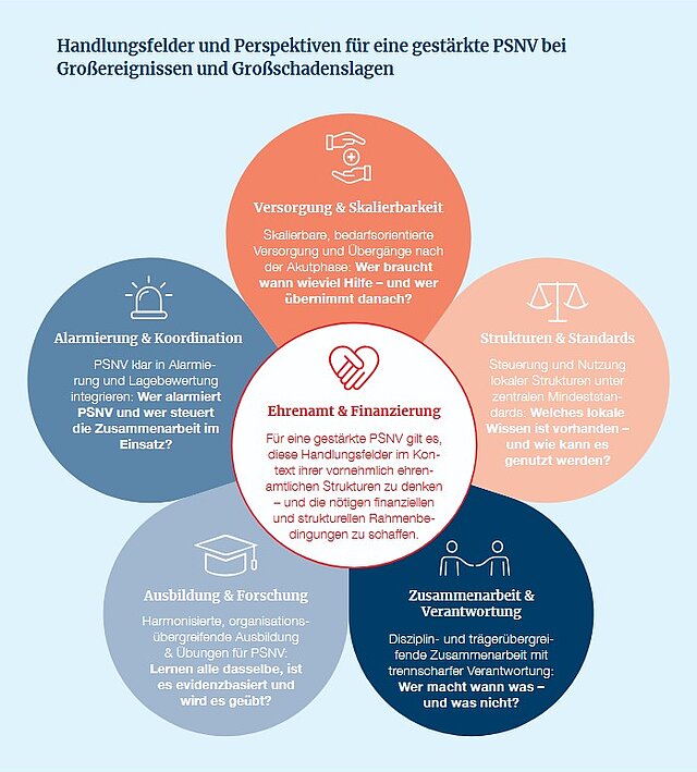 Das Projekt widmete sich vier zentralen Schwerpunkten: der Erhebung des psychosozialen Zustands der Bevölkerung, der Analyse des Hilfesuchverhaltens zur gezielten Unterstützung vulnerabler Gruppen, der Auswertung und Harmonisierung von PSNV-Einsätzen im DRK sowie der Entwicklung einer digitalen Plattform zur Verwertung der Projektergebnisse. Darauf aufbauend war es das Ziel, die PSNV weiterzuentwickeln und durch praxisnahe Forschung die Schaffung einheitlicher Standards in der Einsatzdokumentation zu etablieren.
