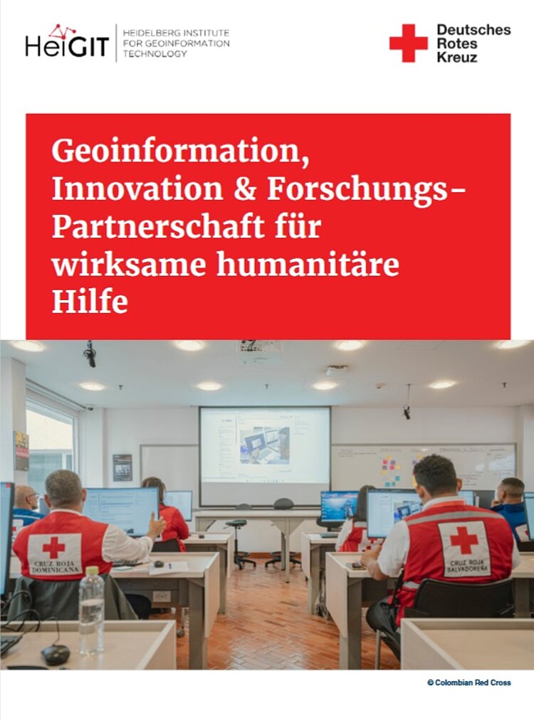 How can geoinformation, new technologies and research contribute to making humanitarian assistance more effective, anticipatory and needs-based? This brochure provides insights into the cooperation between the German Red Cross and the Heidelberg Institute for Geoinformation Technology (HeiGIT), illustrating through concrete examples how research and practice come together in international humanitarian assistance.